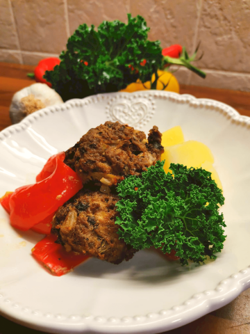 Mleté hovězí steaky s kadeřávkem a pečenou zeleninou