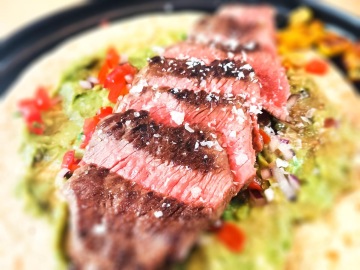 Nyní už si jen steak nakrájet a vložit do tortilly se zeleninou, skvělou chuť tortilly si můžete ještě umocnit připraveným pikantním dipem.